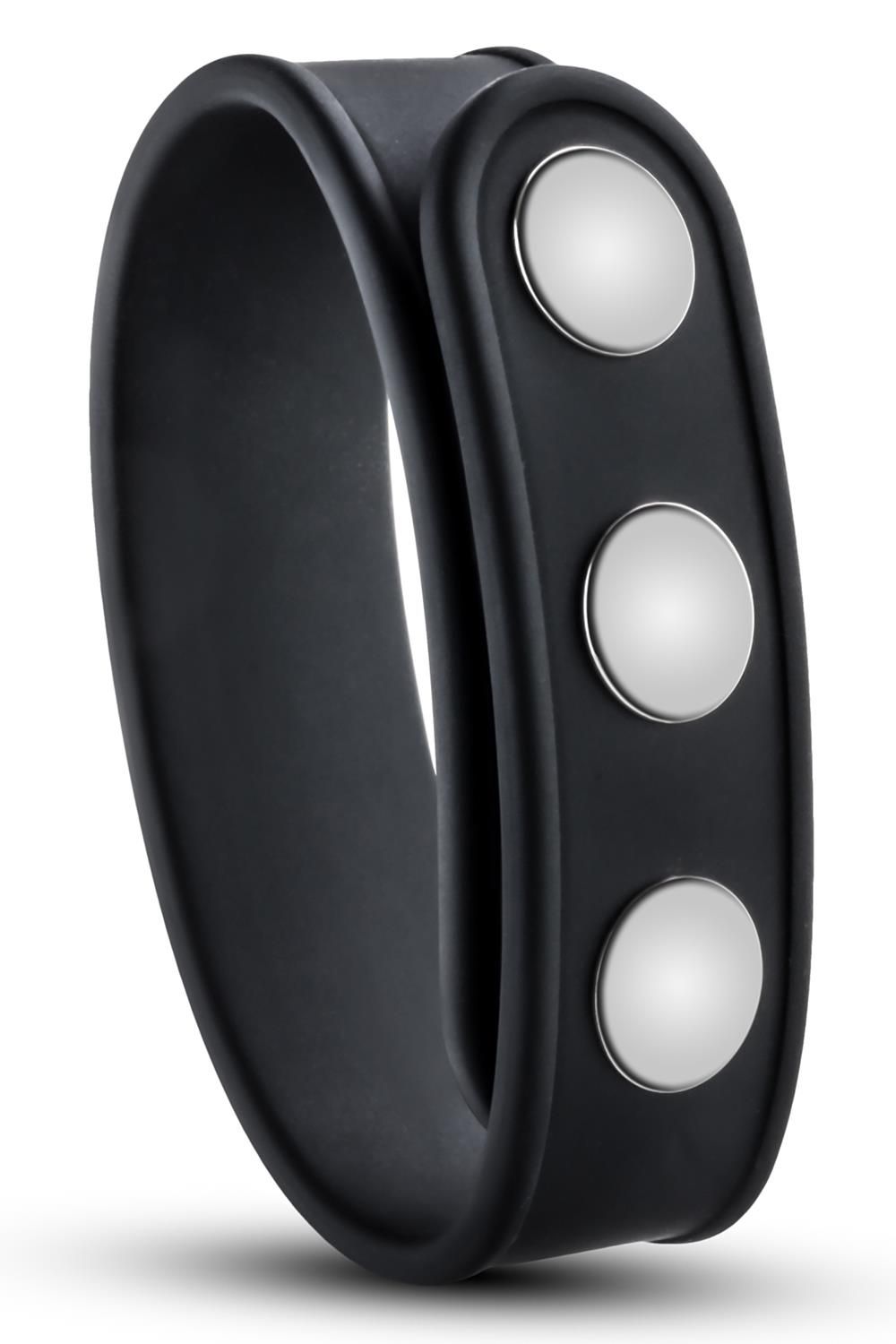 Черное эрекционное кольцо на кнопках. Три размера благодаря регулировке кнопками.