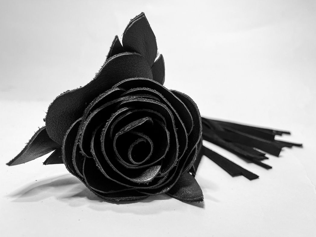 Восхитительная мини-плеть, украшенная чёрной розой. Цветок и рукоятка полностью выполнены из мягкой натуральной кожи, а хвосты плети - натуральная мягкая замша. Размеры этой плети очень изящны, поэтому данную плеть можно использовать, как генитальную, чтобы добавить новых ярких ощущений. Розочка очень удобно лежит в руке и создает неповторимую атмосферу и настроение, этот аксессуар никого не оставит равнодушным!
