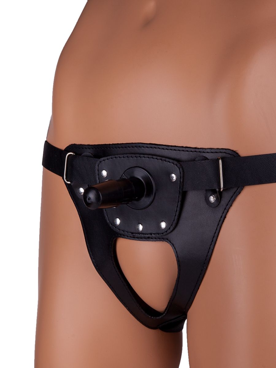 Симпатичные трусики для страпона в комплекте со штырьком для насадок - универсальный сексуальный аксессуар, который подойдет обоим партнерам. Размер трусиков регулируется мягкими и приятными для тела ремешками на бедрах. Передняя стеночка трусиков выполнена из кожи, а ремешки - из плотных лент. Насадки приобретаются отдельно. Этот предмет одежды принесет в вашу интимную жизнь массу новых ощущений.