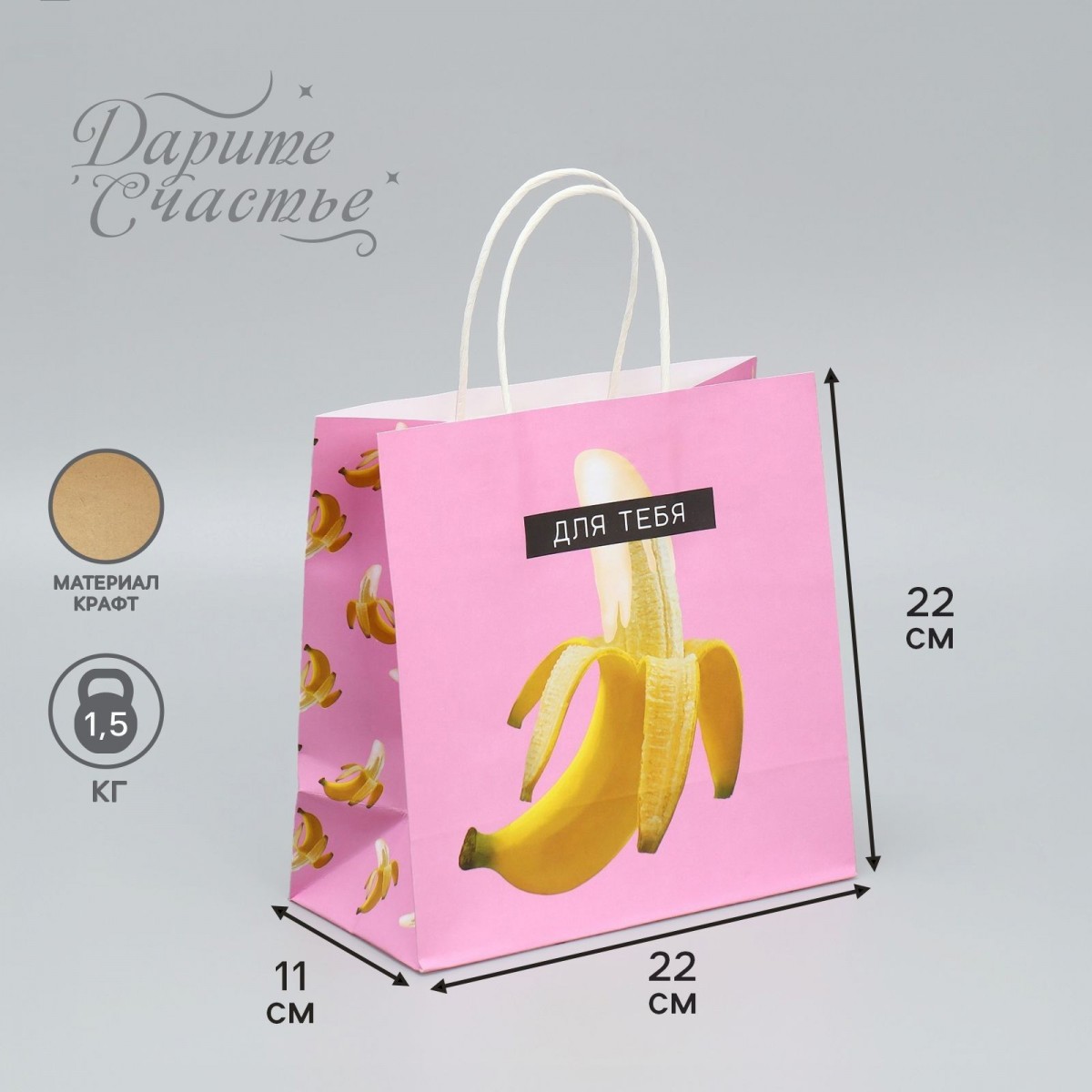 Подарочный крафтовый пакет «Для тебя». Размеры - 22 × 22 × 11 см.