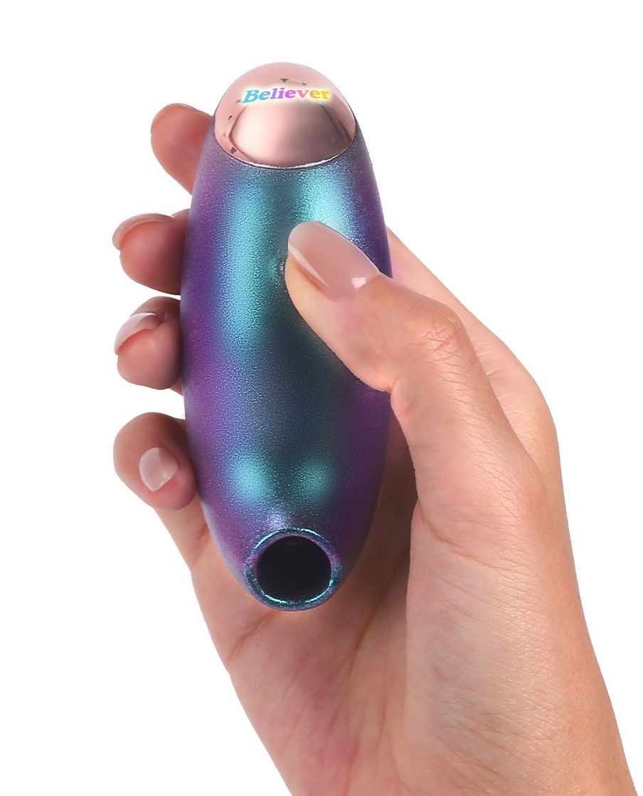 Believer - это маленький, но смелый стимулятор, который даст вам крылья, чтобы вы могли смело экспериментировать и полностью насладиться захватывающими ощущениями в одиночку или вместе с любимым человеком. Уникальный дизайн создает симбиоз между вашим телом и Believer. Эта конструкция объединяет две неразделимые сильные стороны, работающие вместе для достижения взрывных результатов. Ритмичные движения вверх и вниз позволяют гибкой силиконовой мембране двигаться, как крыло, над клиторальной областью. Мягкий раструб нежно облегает клитор и усиливает ощущения, создаваемые движениями. Вы можете экспериментировать с 5 интенсивностями, чтобы настроить стимуляцию по своему вкусу. Смена режимов легко видна даже в темноте благодаря подсветке на экране. Закругленный дизайн Believer полностью адаптирован к эргономике вашей руки, что делает использование этой игрушки настоящим удовольствием. Believer водонепроницаем, поэтому вы можете наслаждаться им в ванне или под душем. Его компактный размер делает его идеальным для путешествий - просто положите его в чемодан или сумочку и возьмите с собой в любое место. Когда появляется желание, Believer всегда будет под рукой! Важно! При первой активации игрушки необходимо снять защиту Travel-lock (блокировка во время транспортировки). Для этого нажмите 3 раза на кнопку включения. Время зарядки - 75 мин. Время работы - 85 мин