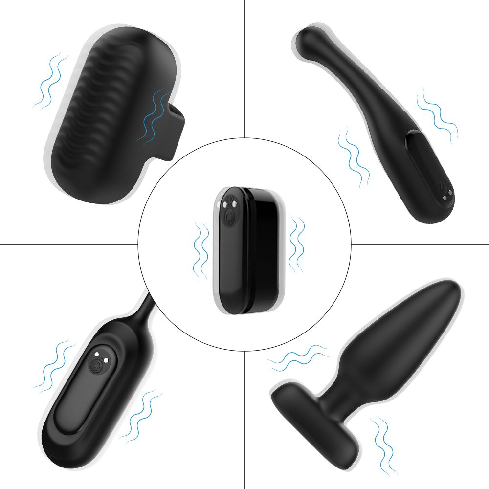 Этот набор (виброэлемент, анальная пробка, насадка на палец, виброяйцо, вибратор с тонким кончиком) - отличный вариант, чтобы испытать новые ощущения от секса. Набор удивит вас своим компактным внешним видом, огромным функционалом и 9 режимами вибрации. Максимально прост в использовании, просто поместите виброэлемент в игрушку, которая вам понадобится, и пользуйтесь ей. Вибромотор перезаряжаемый и имеет уровень защиты IPX7- это значит он полностью водонепроницаемый. Длина виброэлемента - 4,7 см., диаметр - 1,9 см. Длина насадки на палец - 5,3 см., диаметр - 2,3 см. Длина виброяйца - 17,8 см., рабочая длина - 8,5 см., диаметр - 2,7 см. Длина пробки - 12,2 см., диаметр - 3 см. Длина вибратора с тонким кончиком - 12,7 см., диаметр головки - 2,5 см.